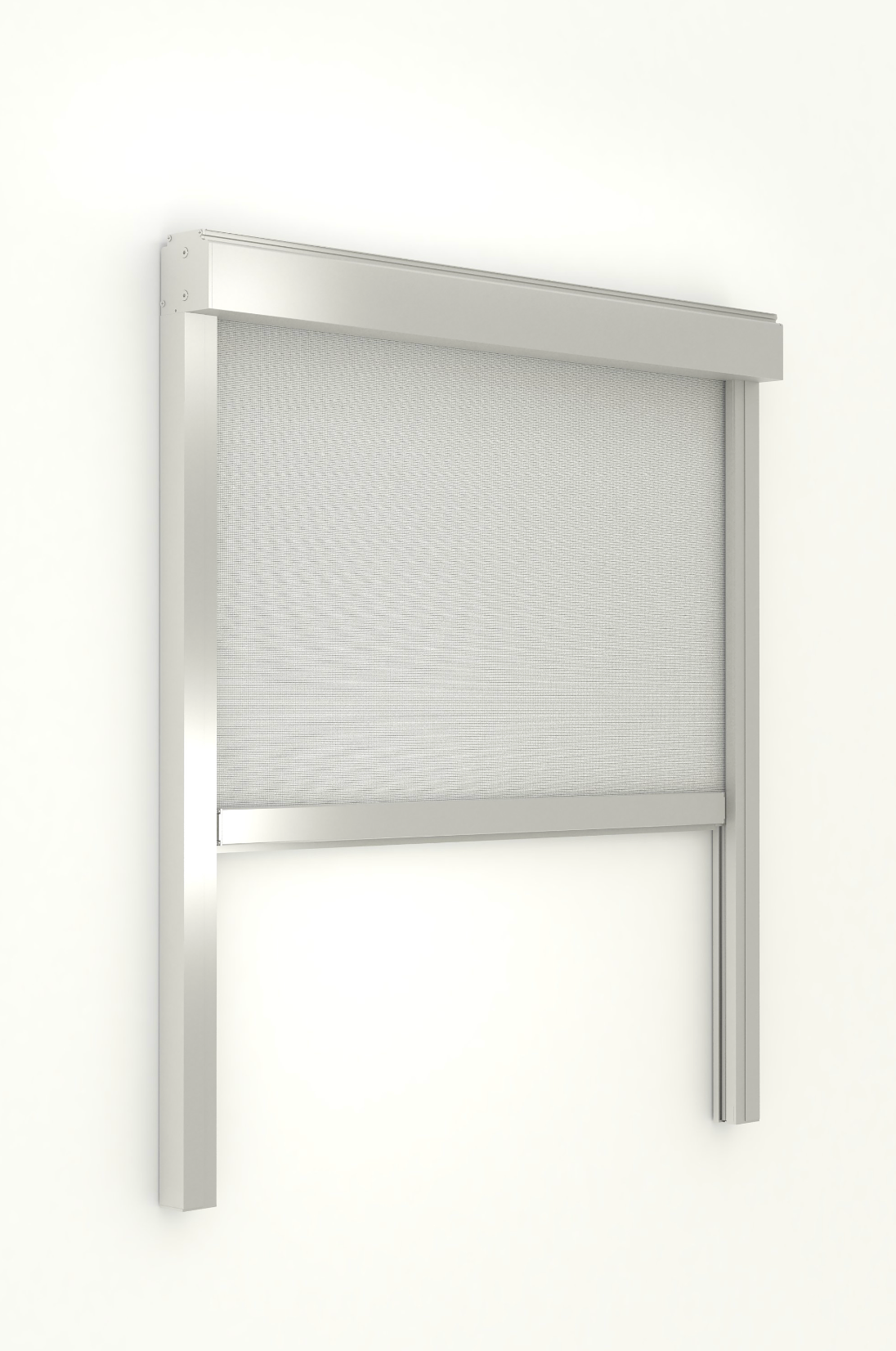 La guida laterale è composta da due parti in alluminio estruso e contiene un’anima interna in PVC, con alette flessibili compensatrici, e permette un ottimo scorrimento della cerniera saldata sulle estremità del tessuto. La zanzariera è disponibile con comando ad argano o motore. È possibile installare il cassonetto con supporti a soffitto in acciaio zincato o mediante sistema autoportante sulle guide laterali. È disponibile apposita guida laterale che permette l’inserimento della zanzariera ad incasso nel serramento.
