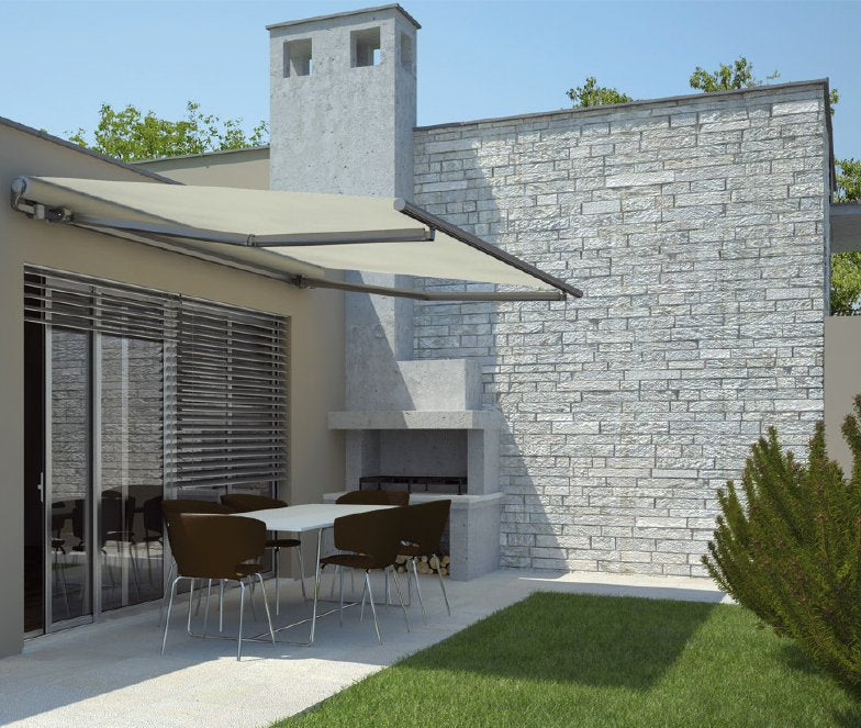 Stile essenziale, nessuna vite in vista, ogni singolo componente è stato progettato e modellato alla perfezione. Soffermatevi sui supporti del tubo avvolgitore. Sono inseriti direttamente nelle estremità della barra quadra e, mantenendo il tessuto al di sopra di questa, riducono l`ingombro della tenda chiusa.