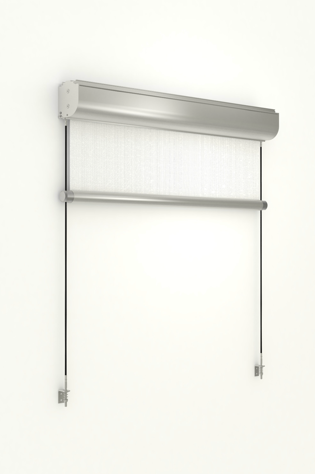 Il cassonetto è in alluminio in due parti componibili di 103 x 116 mm con design tondo. Le funi in acciaio inossidabile AISI 316 di 4 mm di spessore garantiscono una elevata resistenza al vento con eleganza e praticità.