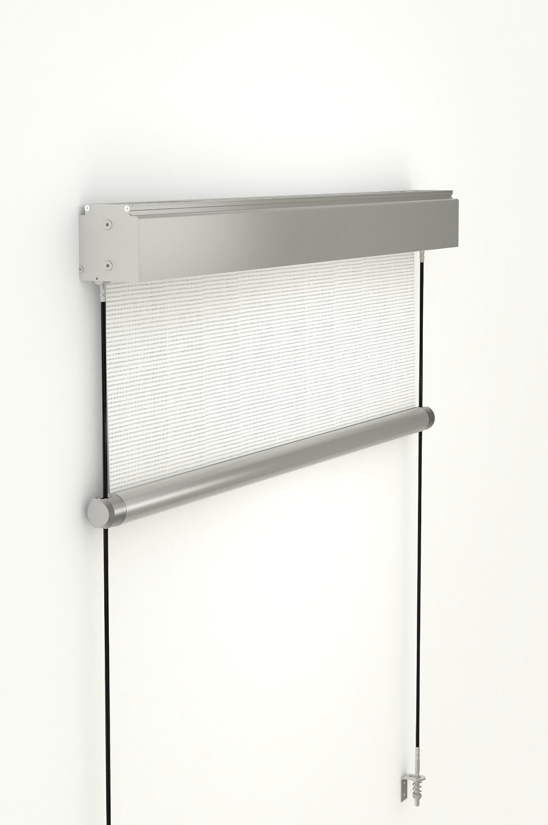 Il cassonetto è in alluminio nelle dimensioni ridotte di 83 x 90 mm con design quadro. Le funi in acciaio inossidabile AISI 316 di 4 mm di spessore garantiscono una elevata resistenza al vento con eleganza e praticità.