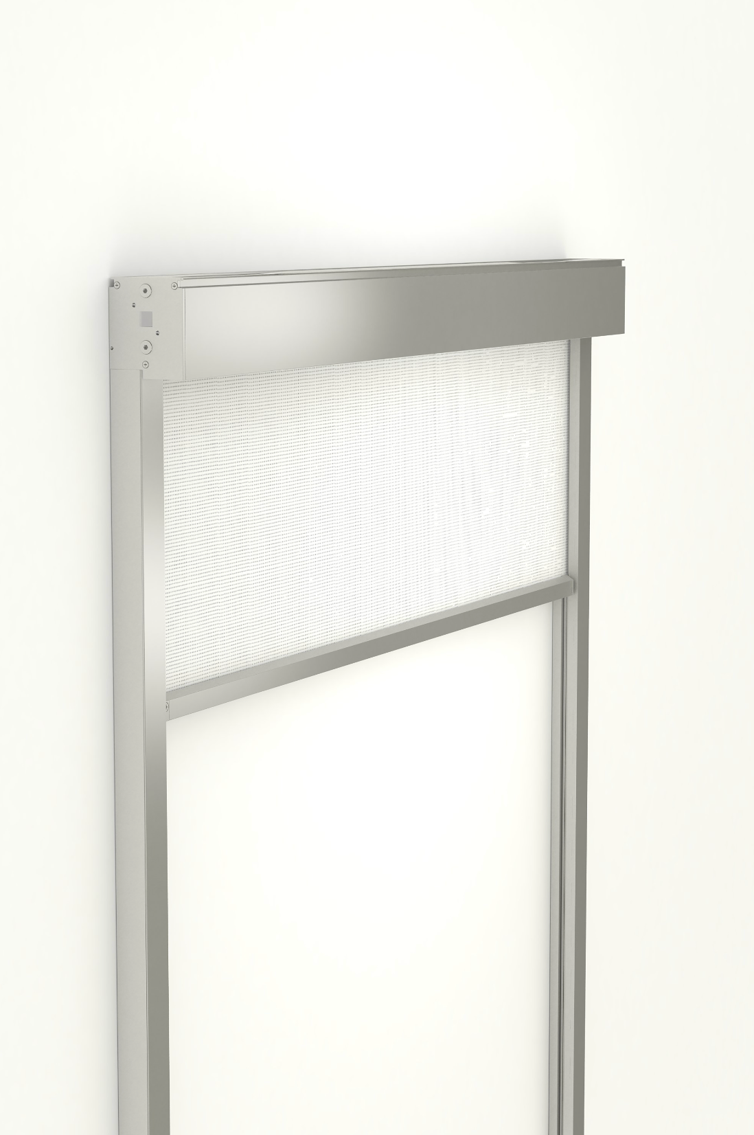 La guida laterale è composta da due parti in alluminio estruso e contiene un’anima interna in PVC, con alette flessibili compensatrici, e permette un ottimo scorrimento della cerniera saldata sulle estremità del tessuto. La tenda è disponibile con comando a catena, argano o motore. E’ possibile installare il cassonetto con supporti a soffitto in acciaio zincato o mediante sistema autoportante sulle guide laterali.