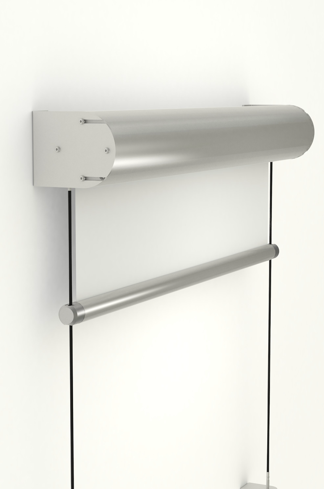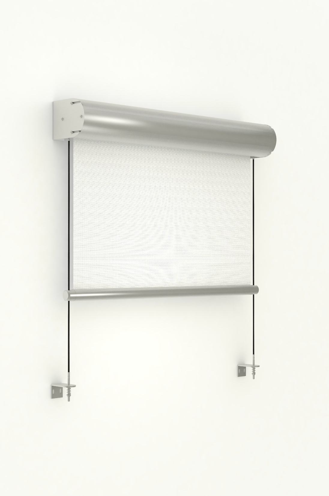 Le funi inox possono essere ancorate a parete o pavimento mediante speciali supporti che garantiscono una messa in trazione costante del cavo. La tenda è disponibile con comando a motore. È possibile installare il cassonetto direttamente mediante le testate laterali del cassonetto in acciaio inox a parete o soffitto.