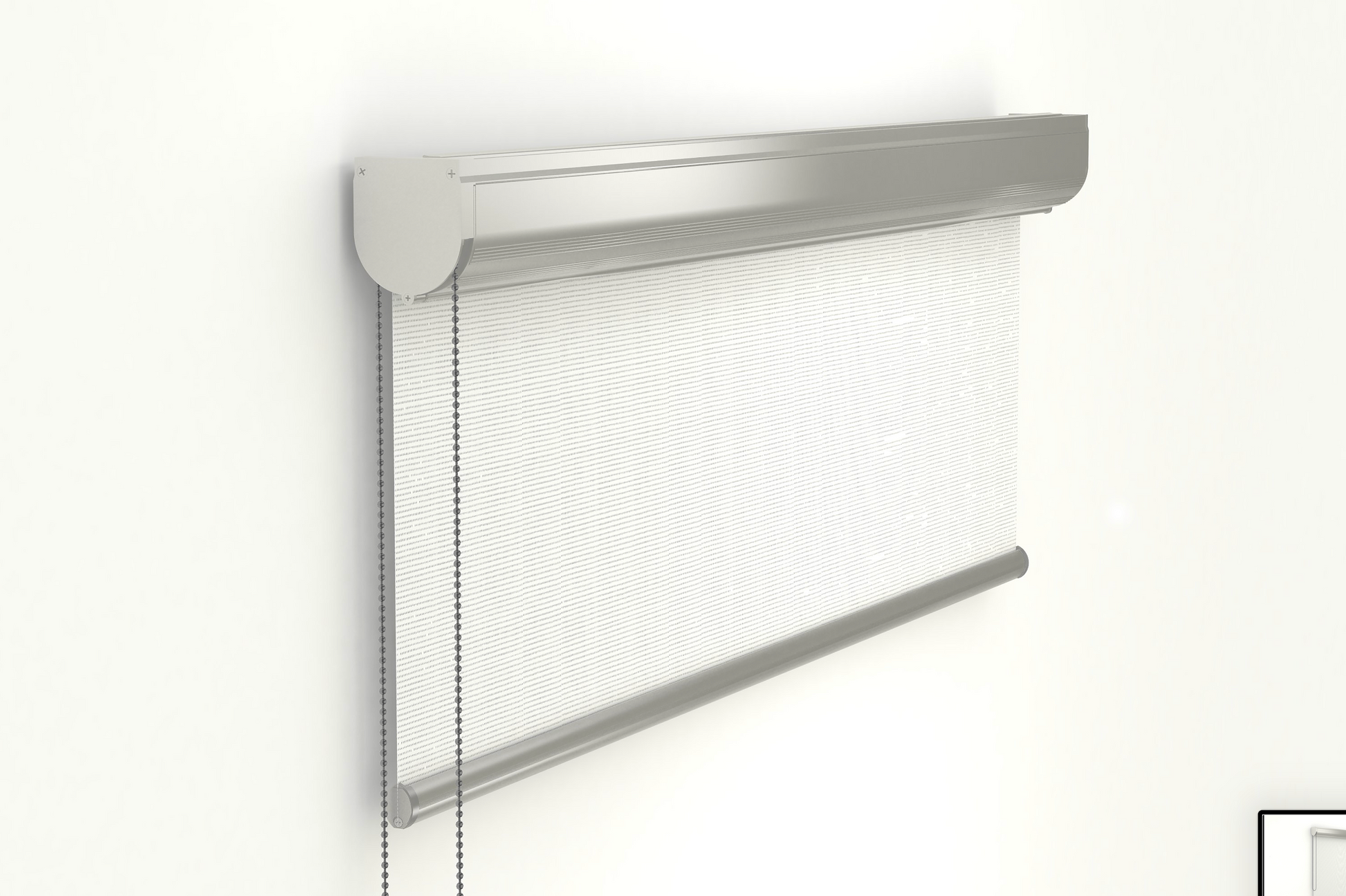 Il cassonetto in alluminio in due parti di dimensione 76 x 86 mm permette di raggiungere buone dimensioni grazie ad uno speciale rullo avvolgitore in alluminio estruso. Il sistema è realizzabile senza guide o con guide laterali in cavetto.
